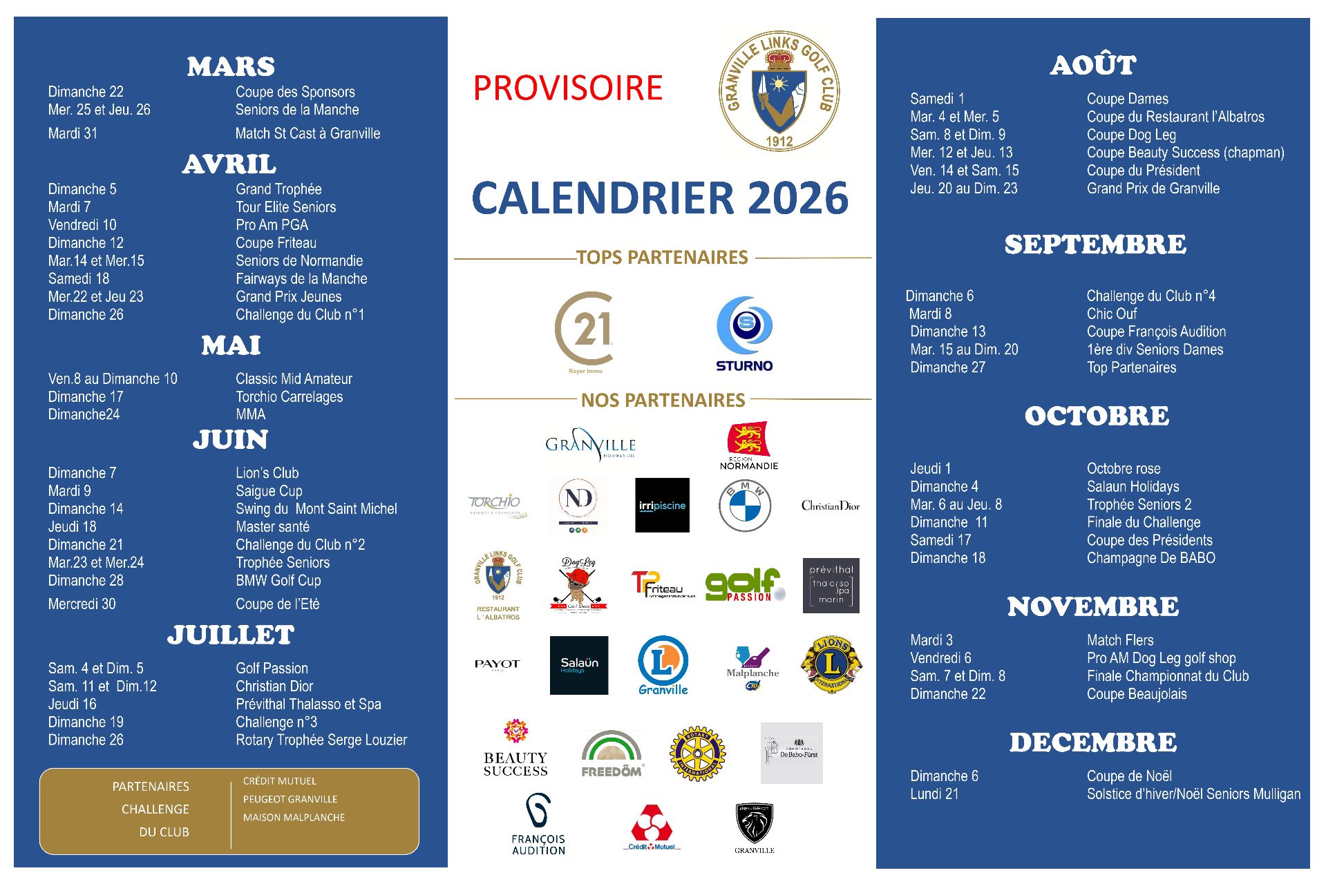 Calendrier 2026 - PROVISOIRE